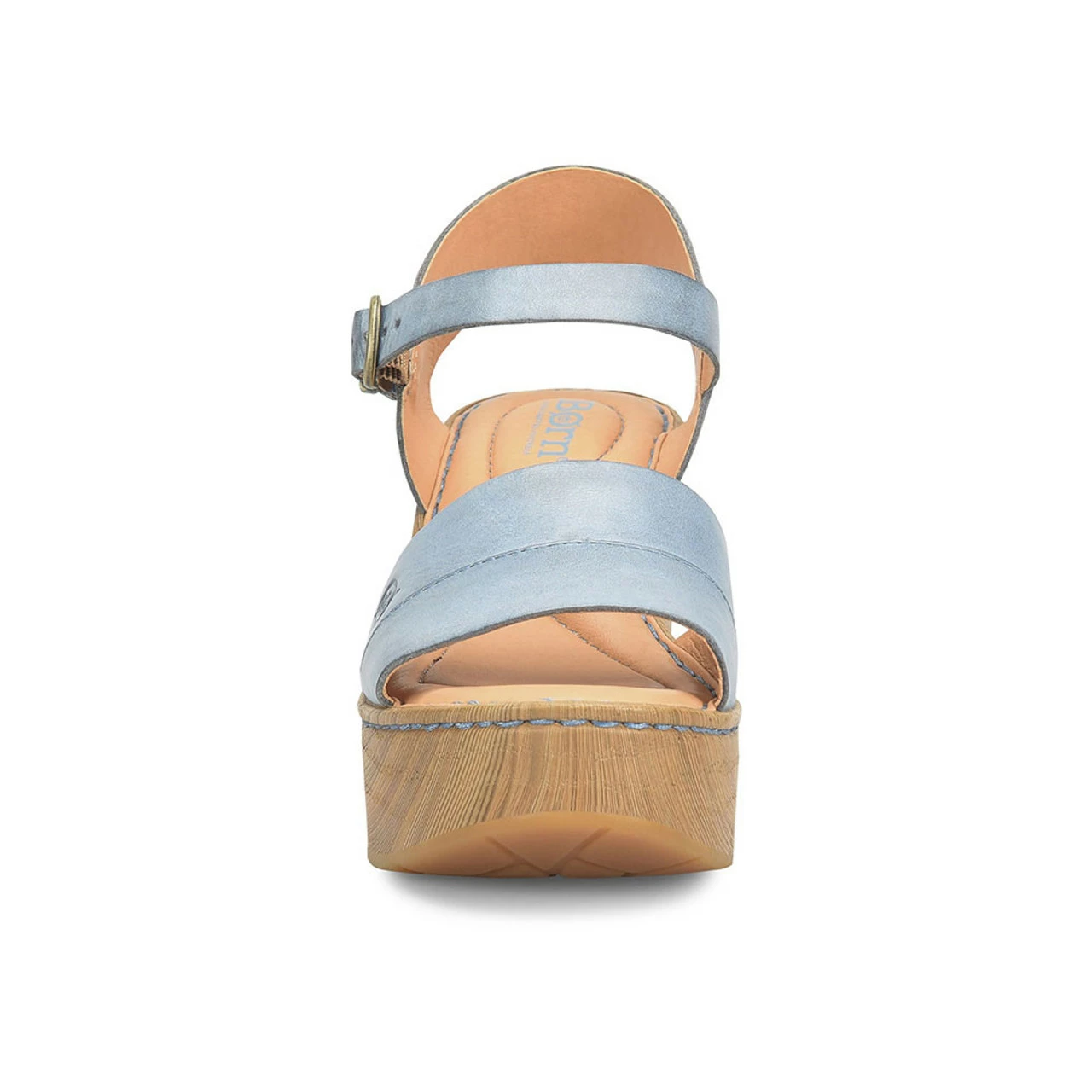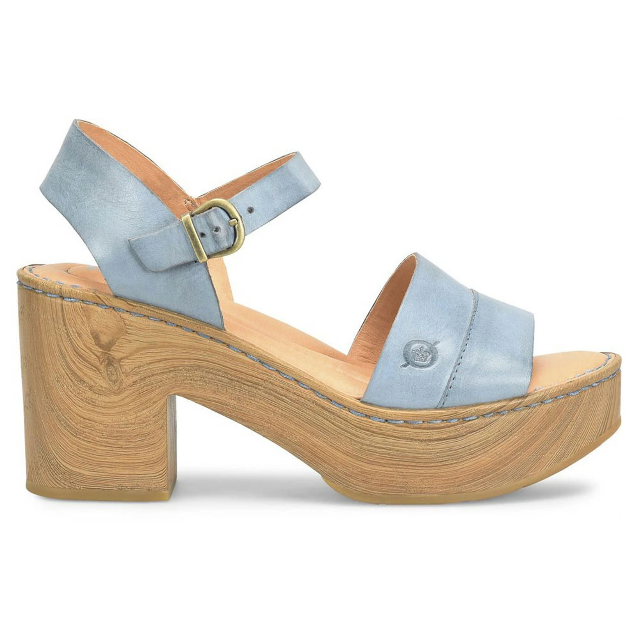 - High-traction rubber outsole with textured wood heel and platform
