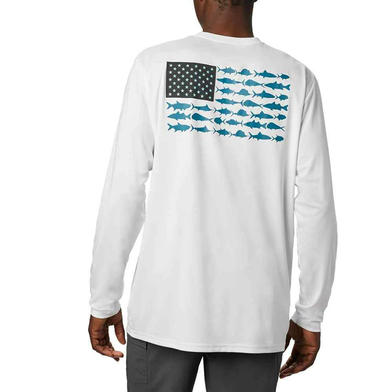 For those days you spend in the sun, this men’s long sleeve performance shirt is one you want to take along with you. Buit in UPF 50 keeps you protected from the sun, while the fish flag on the back provides an eye catching style. This moisture wicking shirt perfect for your next fishing trip.