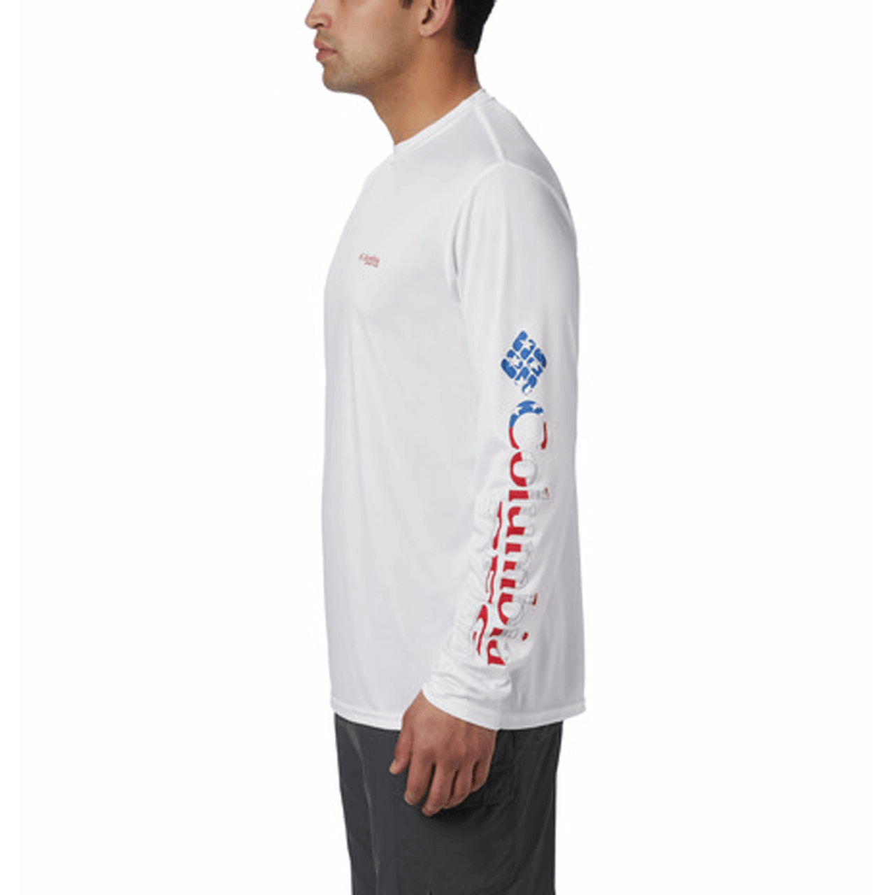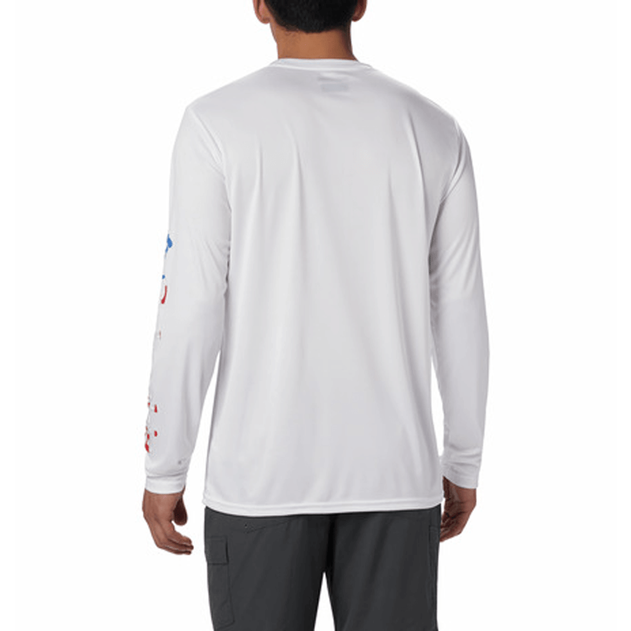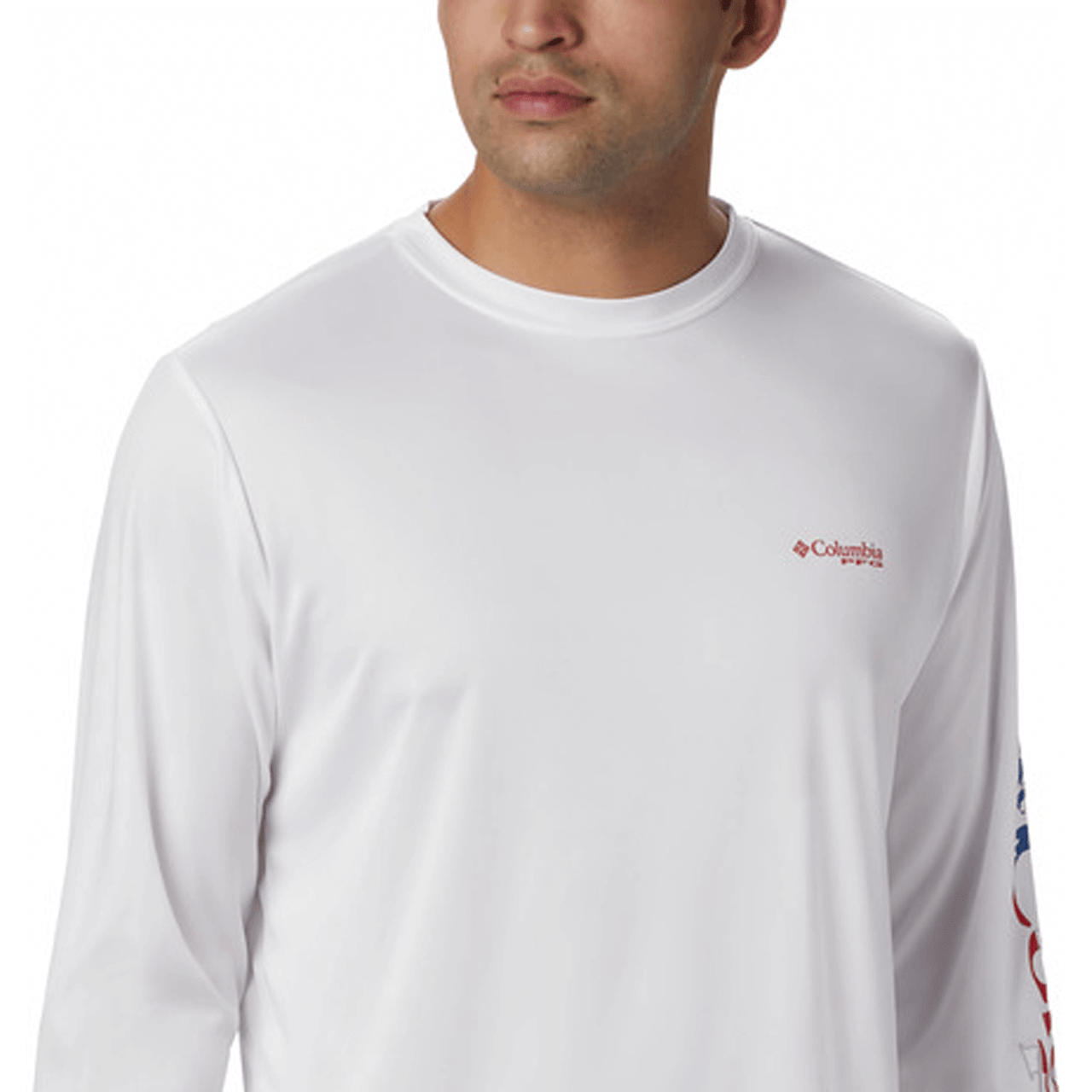 Show your spirit in this cool and comfortable long sleeve fishing shirt with built-in UPF 50 sun protection and sweat-wicking.