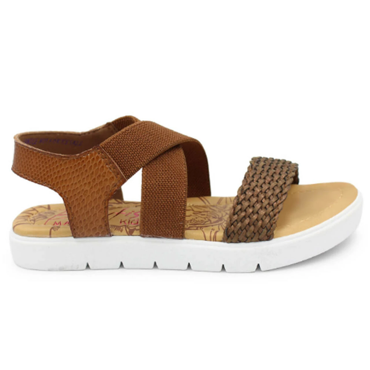 Add comfort and style to her daily outfits with this super cute slide on sandal. This sandal features elastic straps for easy on and off along with a lightly padded foot bed for all day comfort.Â