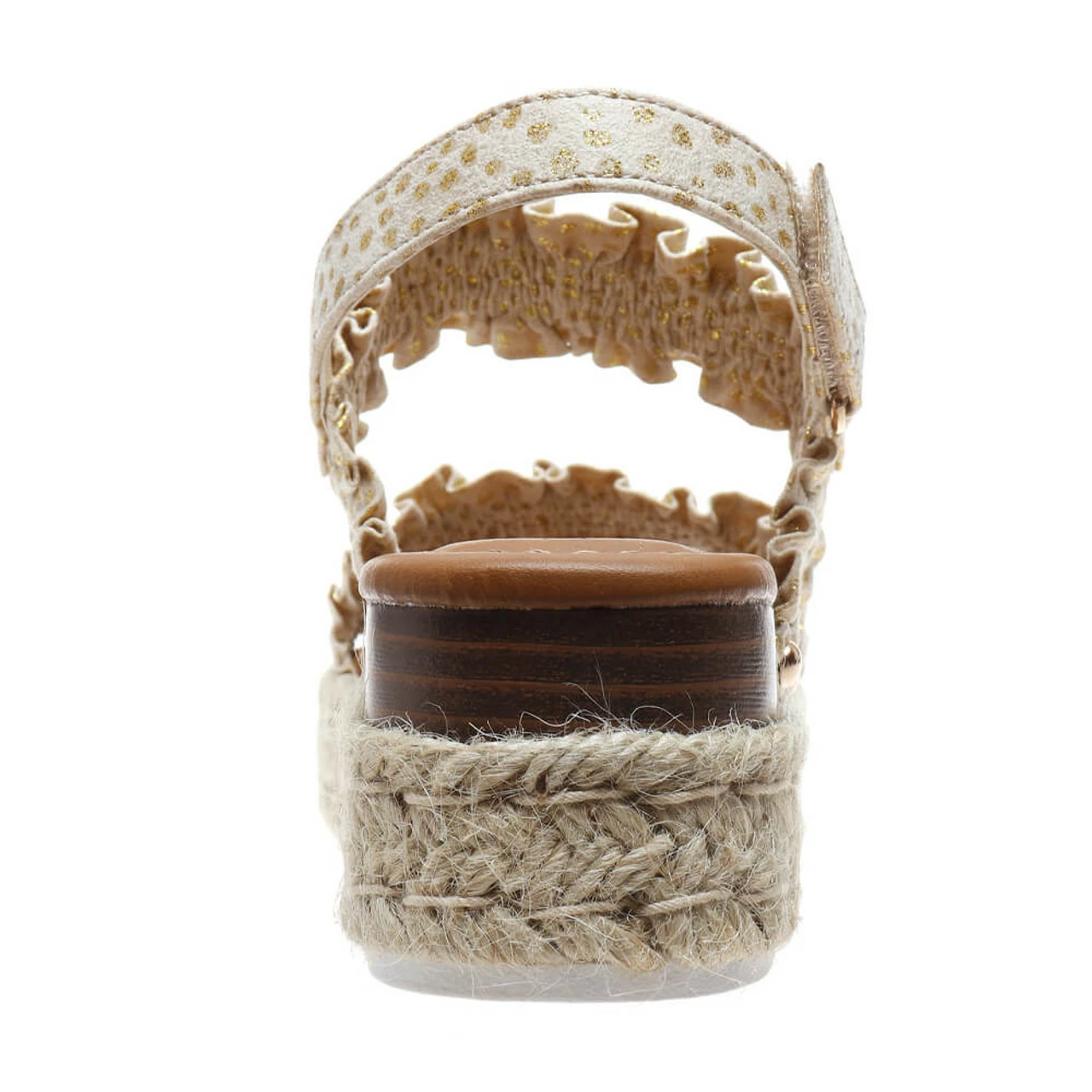 This sandal has a fun and frilly look to it with the scrunched material. The woven platform gives it a boho look that is perfect for the summer. Pair it with your favorite midi dress and take on the town in confidence.