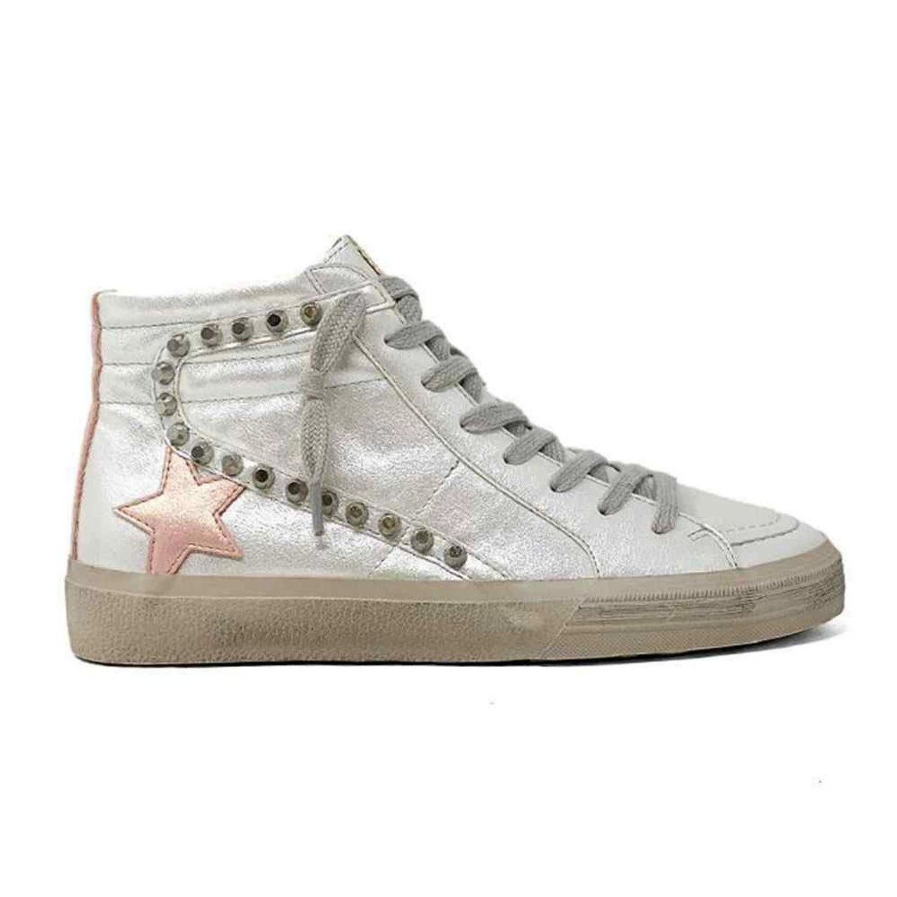 Bringing rock and roll to everyday wear sneakers, these high tops are great for all occasions and help you elevate your style. Crafted from faux leather, these sneakers are comfortable and look great with jeans or even party dresses.