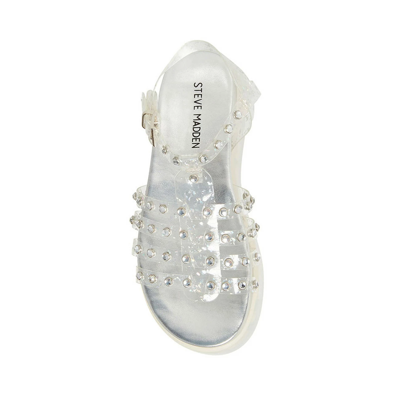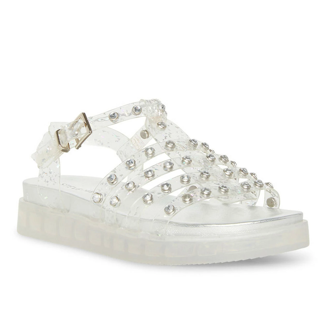 This Steve Madden classic JCELINE jelly sandal features fun studs along the straps for a pretty finish. This sandal sits on a synthetic flatform sole for ultimate comfort.