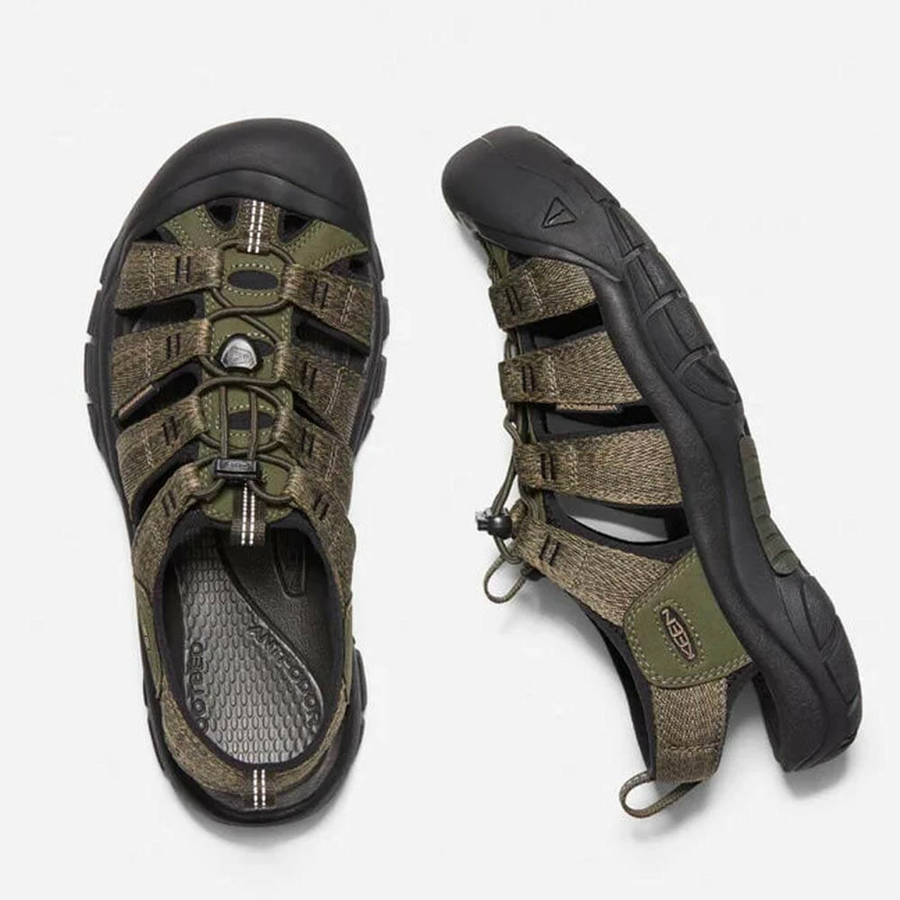 Keen’s classic water shoe the Newport H2 men’s sandal offers the airiness of a sandal and the toe protection of a shoe. The rubber sole offers excellent traction, and the washable webbing upper allows the flexibility of outdoor adventures in and out of the water.