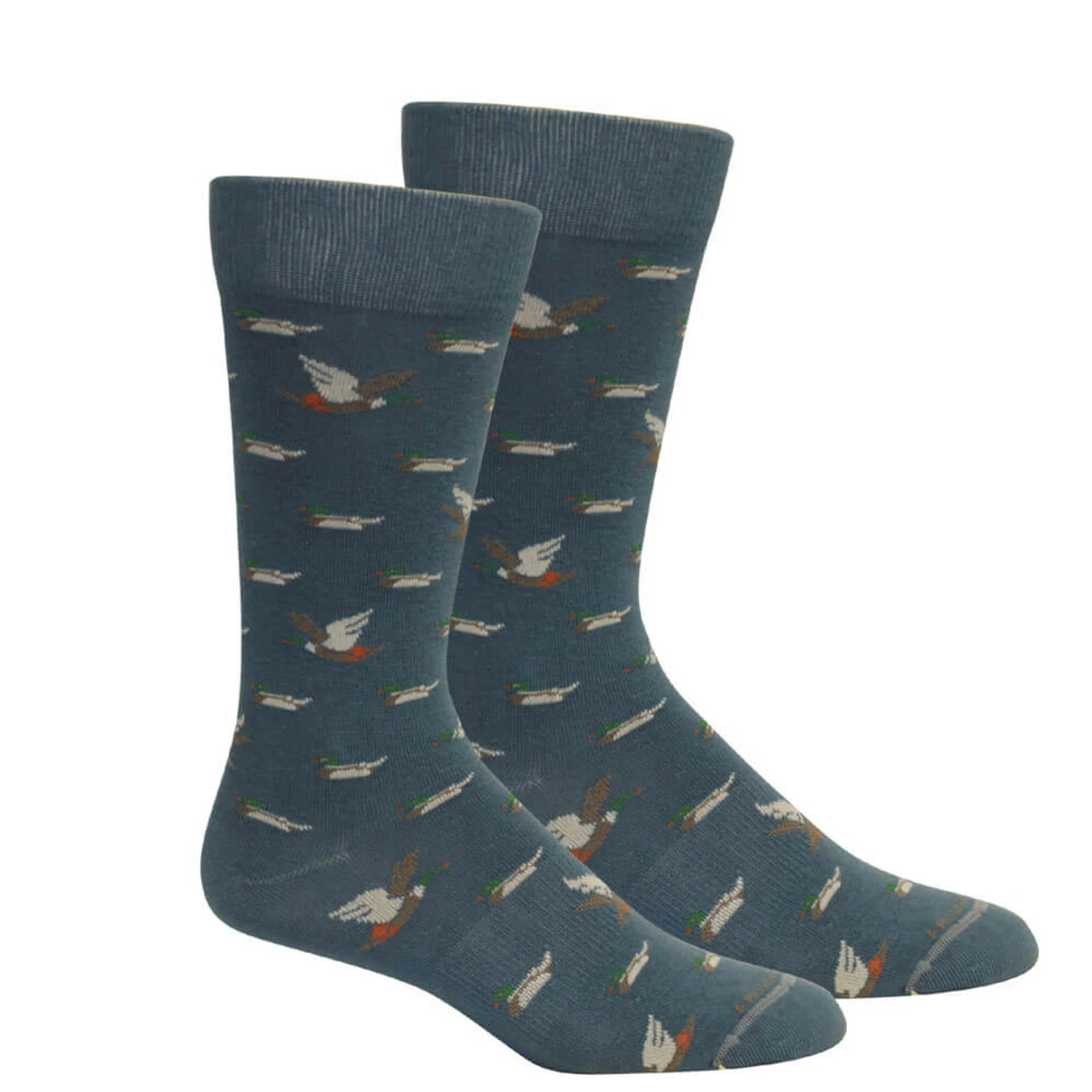 Duck hunters will love these men’s socks. Flying ducks are printed on this soft pair that are made in America.