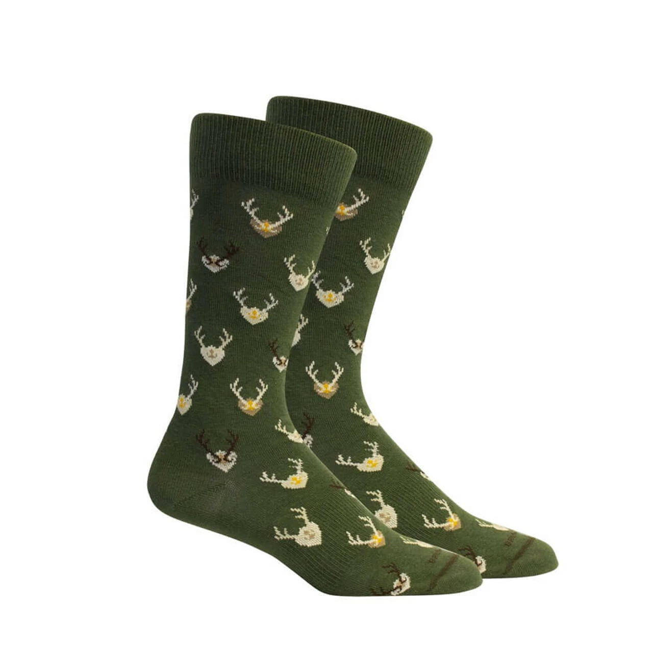 Eli the Elk is portrayed on these soft men’s socks amidst a sage green backdrop. If elk hunting is one of your hobbies, you will enjoy showing it while wearing these.