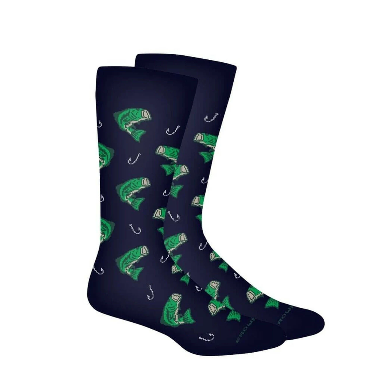 If you or someone you know love fishing, these socks are the perfect gift. Large mouth bass and hooks printed on these socks that are made in America make these your go-to fishing socks.