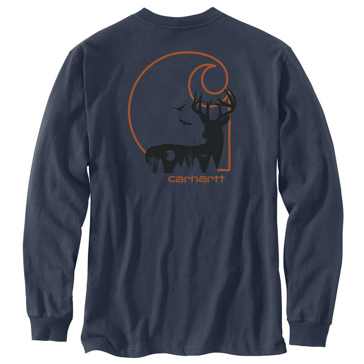 Not just your average long sleeve pocket tee, this one is made of a heavyweight and durable fabric that will keep you warm from days out hunting to working long hours. It has a hunting graphic on the back and a pocket on the front.