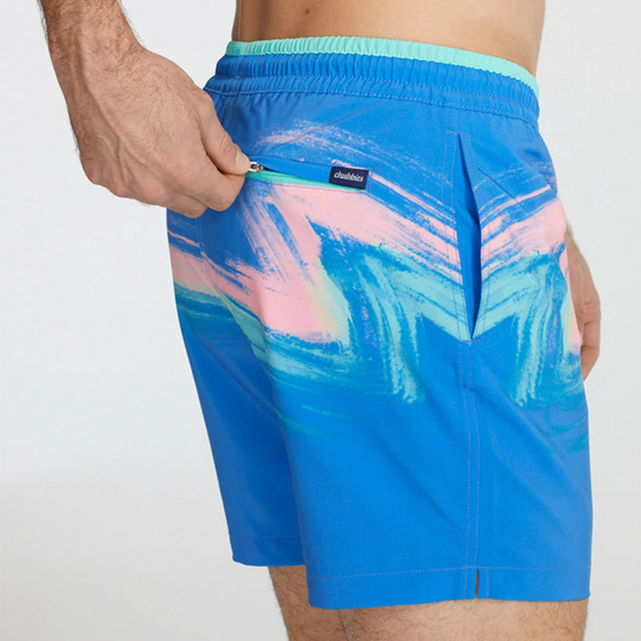 Swim in style with these Chubbies swim trunks featuring an ultra-quick drying shell, mesh basket liner, and a zipper back pocket.