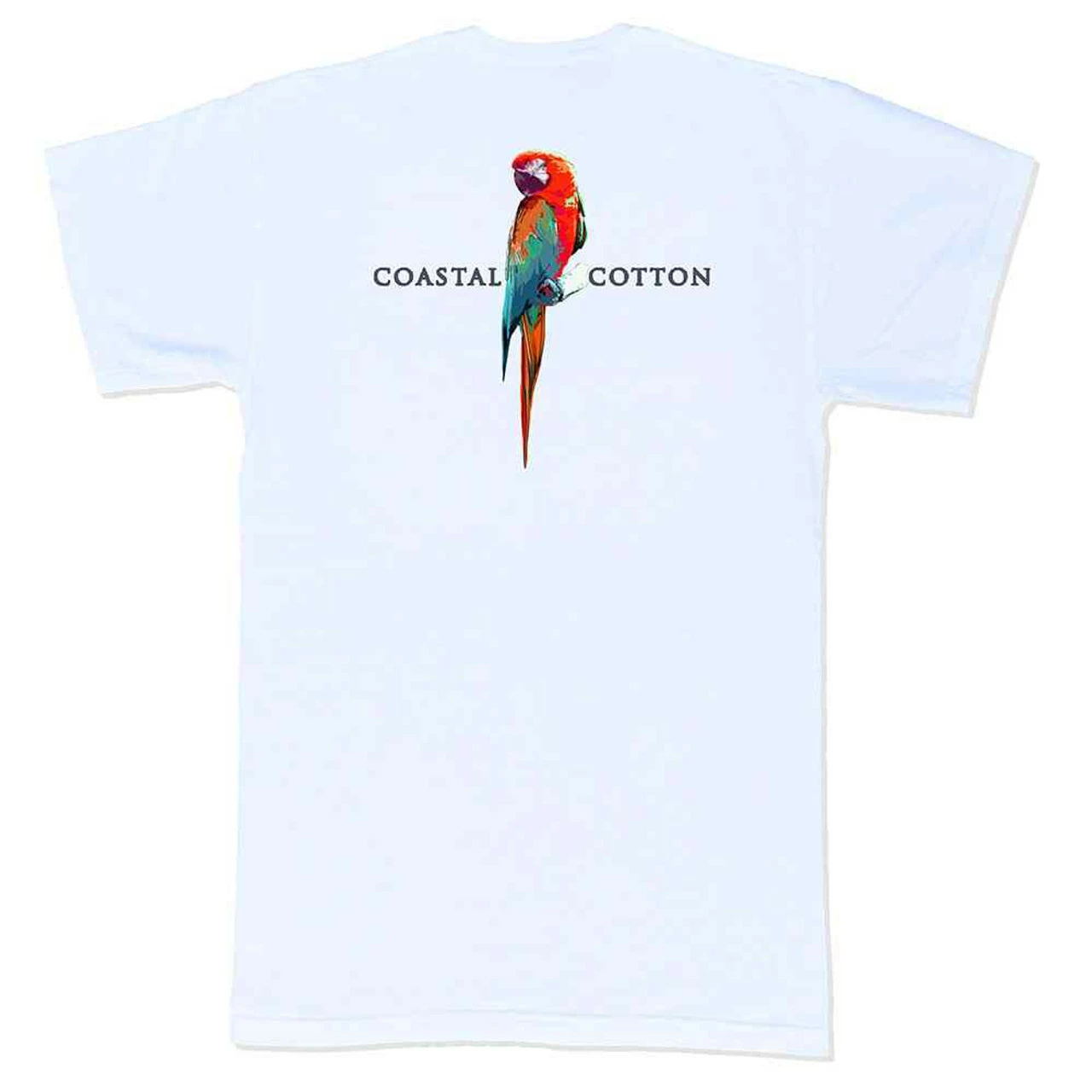 A comfortable pre-washed short sleeve cotton t-shirt with a colorful parrot on the back.