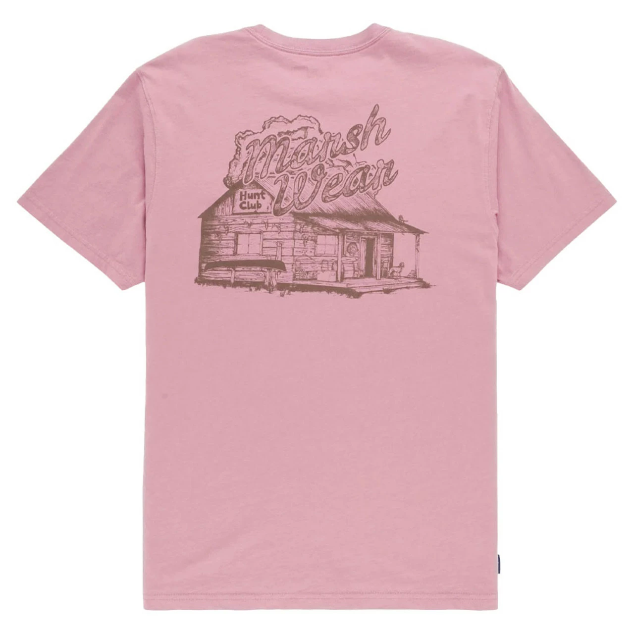 One of Marsh Wear’s top men’s tees, this short sleeve t-shirt is made with Peruvian pima cotton and features a hunt club log cabin on the back.