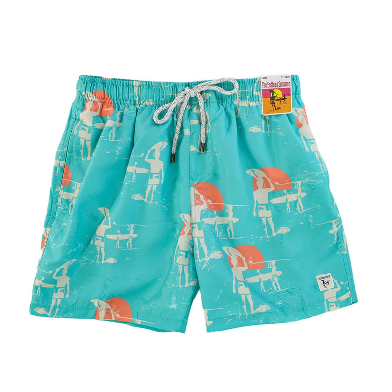 Hit the waves in style when you have on these surfer swim shorts. They feature all around comfort along with bright abstract graphics.