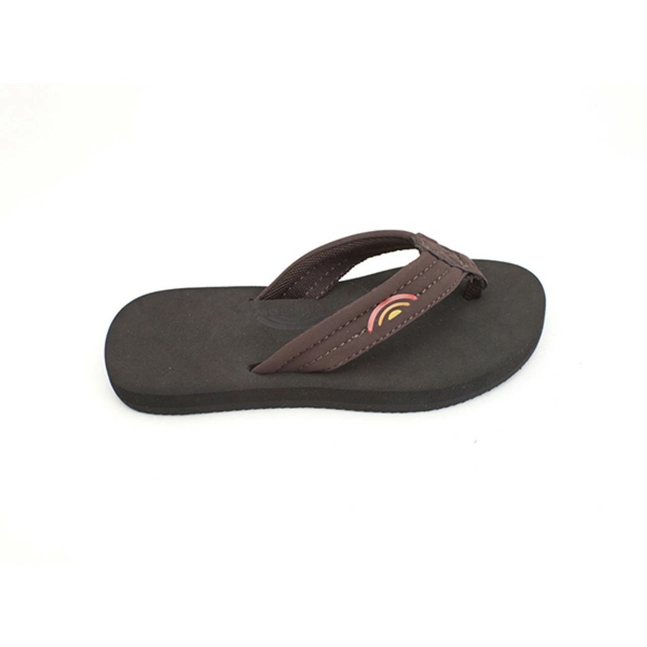 Rainbow Grombows flip flops for boys are soft and squishy sandals, with a smooth, comfortable neoprene strap. For the toddlers the four smallest sizes come with a back strap attached at the heel. (not pictured)
