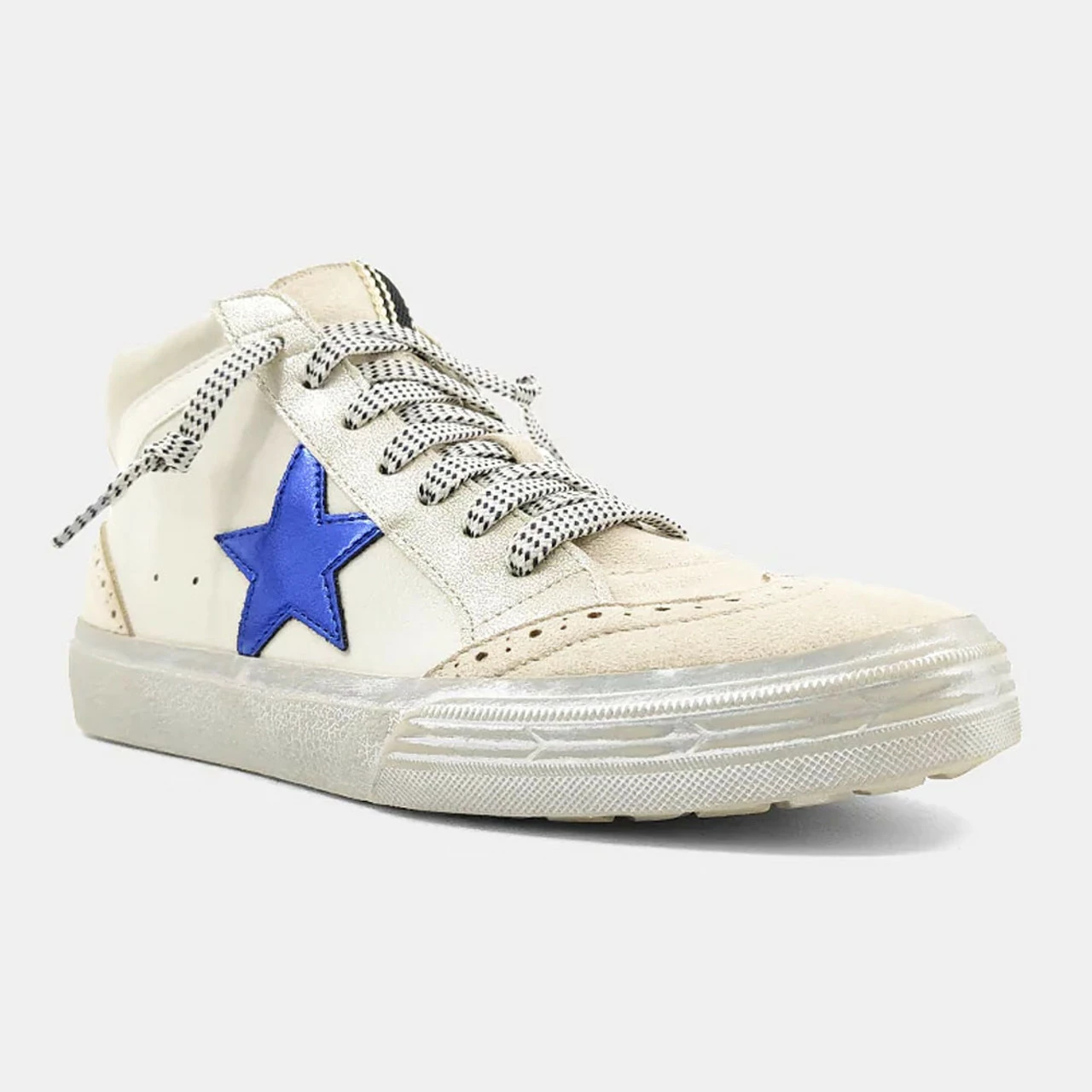 Grab your size in these retro, vintage basketball inspired kicks. They feature bone colored snake skin texture with a large star detail on the side. These sneakers make a great addition to a casual outfit for running errands or hanging with friends.