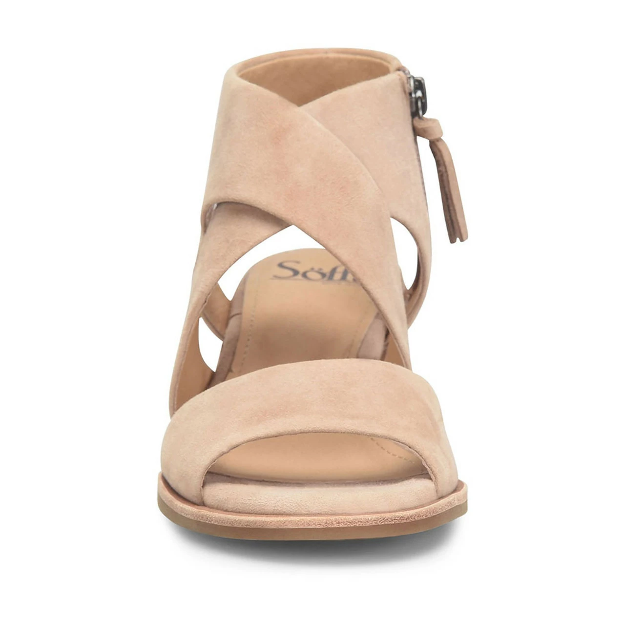 These wraparound leather sandals feature a flexible, slip-resistant TPR outsole with leather weld and an architectural rounded stacked heel.Â