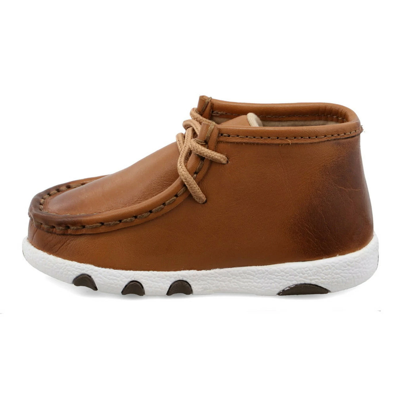 Twisted X brings the Toddler Chukka Driving Moc. The most important idea is that Twisted X driving moc styles are handmade in full-grain leather, with the same components as any other Twisted X collection, providing a wider lightweight EVA footbed and a durable molded rubber outsole for improved stability and support for your little one.