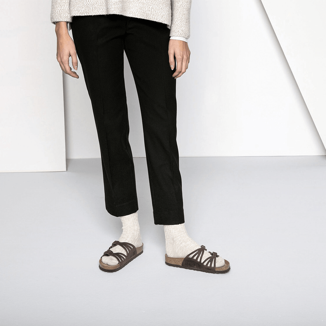 A soft, casual, cotton women’s sock made in a neutral beighe and white color with a reinforced toe and heel for long lasting comfort and protection.