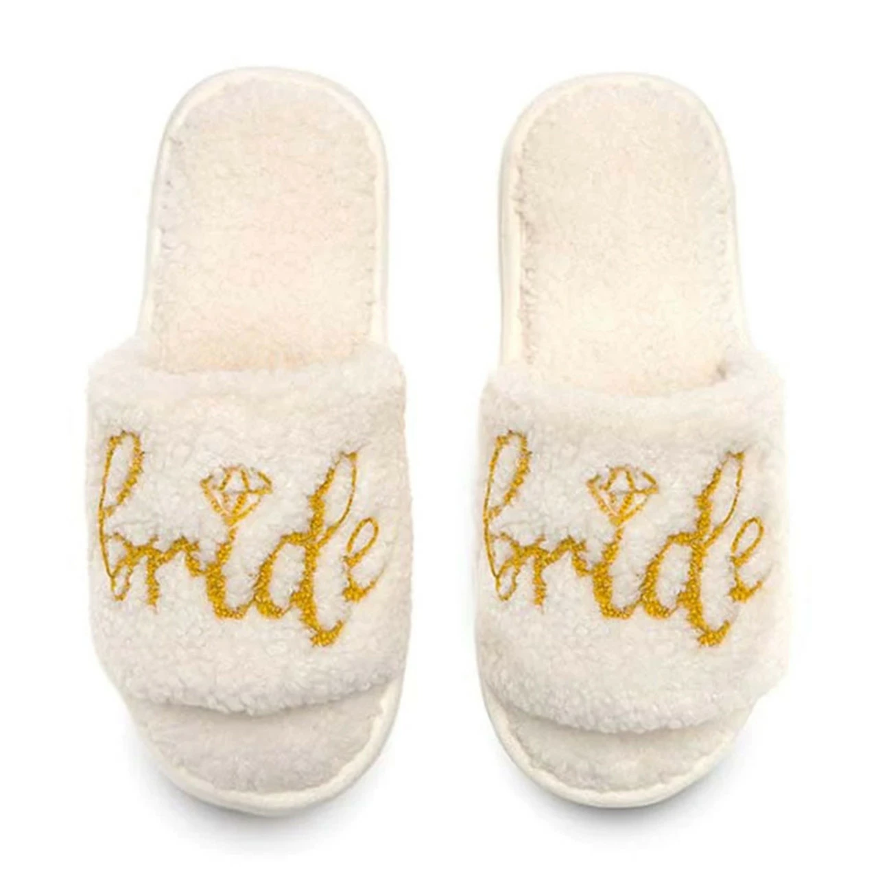 Are you excited and getting ready for the big day? Add to the fun with these precious bride slippers to keep your feet comfortable and cozy!