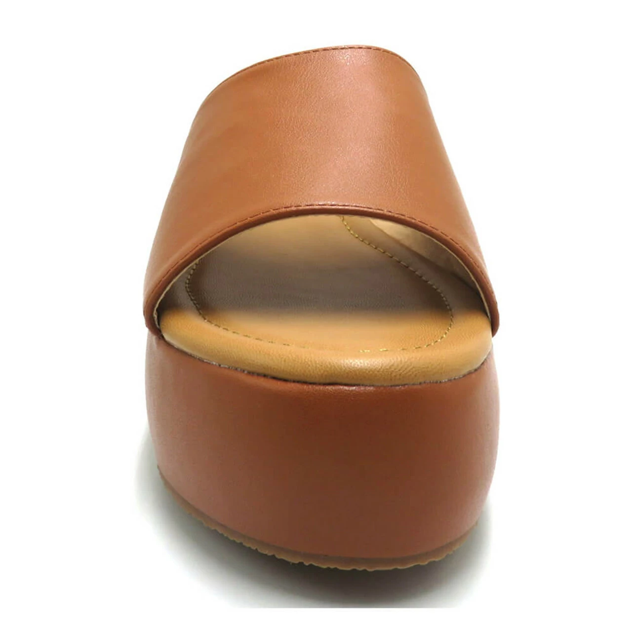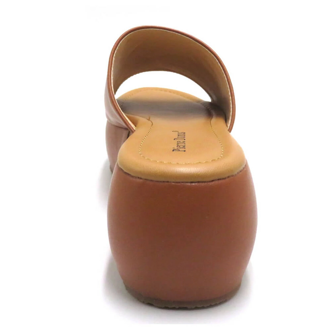 This platform sandal makes it possible to add extra height but still stay casual. It has a very basic design with an even height and wide strap. This sandal would pair well with dress pants and a cute blouse.