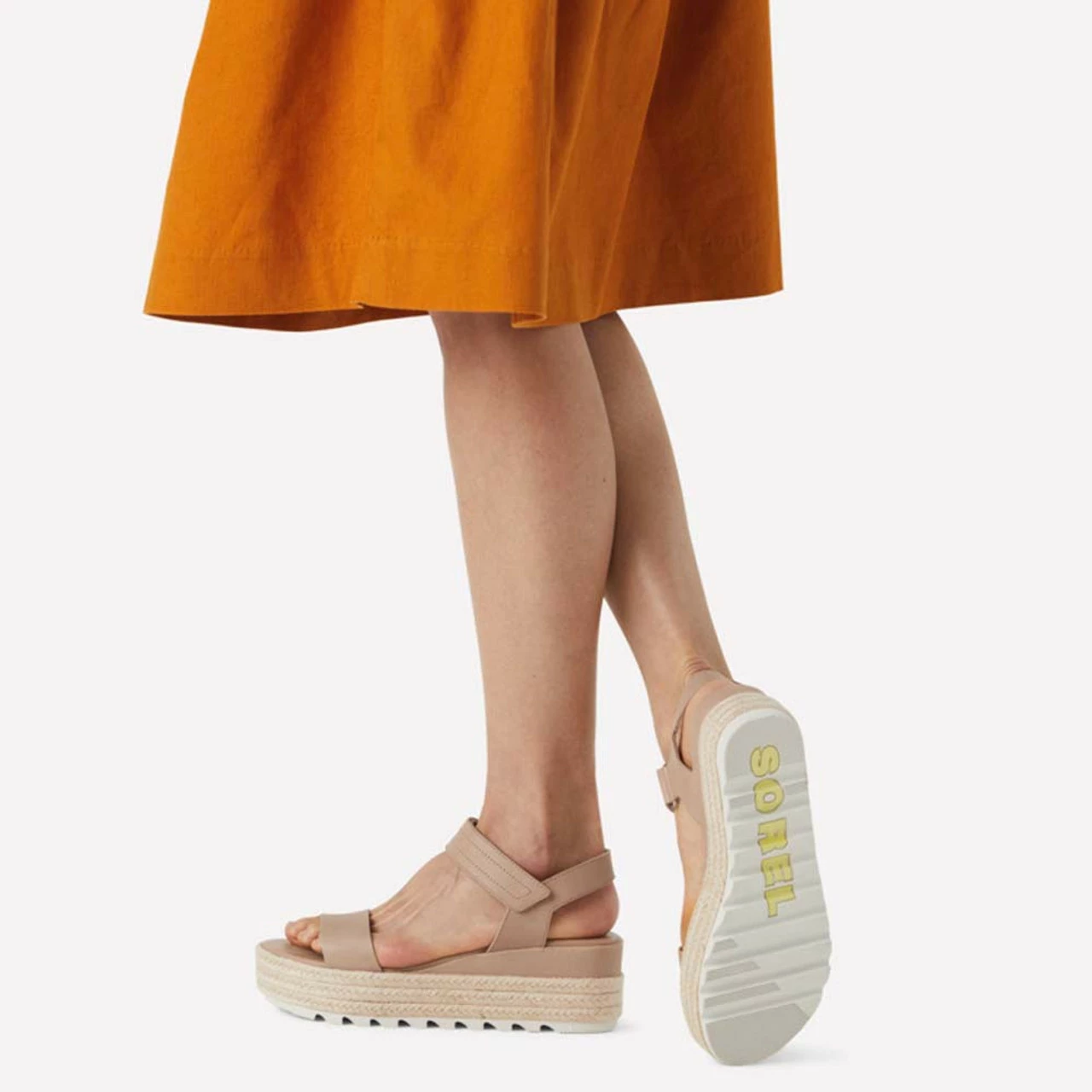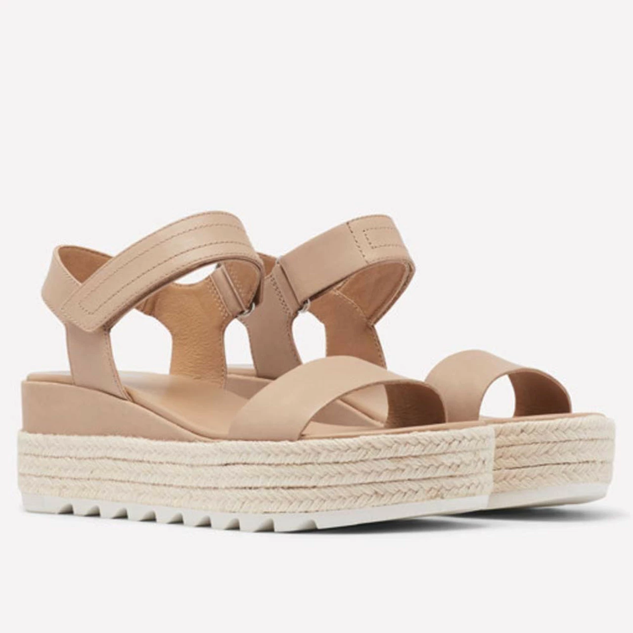 This sandal is perfect to dress up your Spring dresses! It features an easy velcro strap, a braided platform heel, and a scalloped bottom.Â