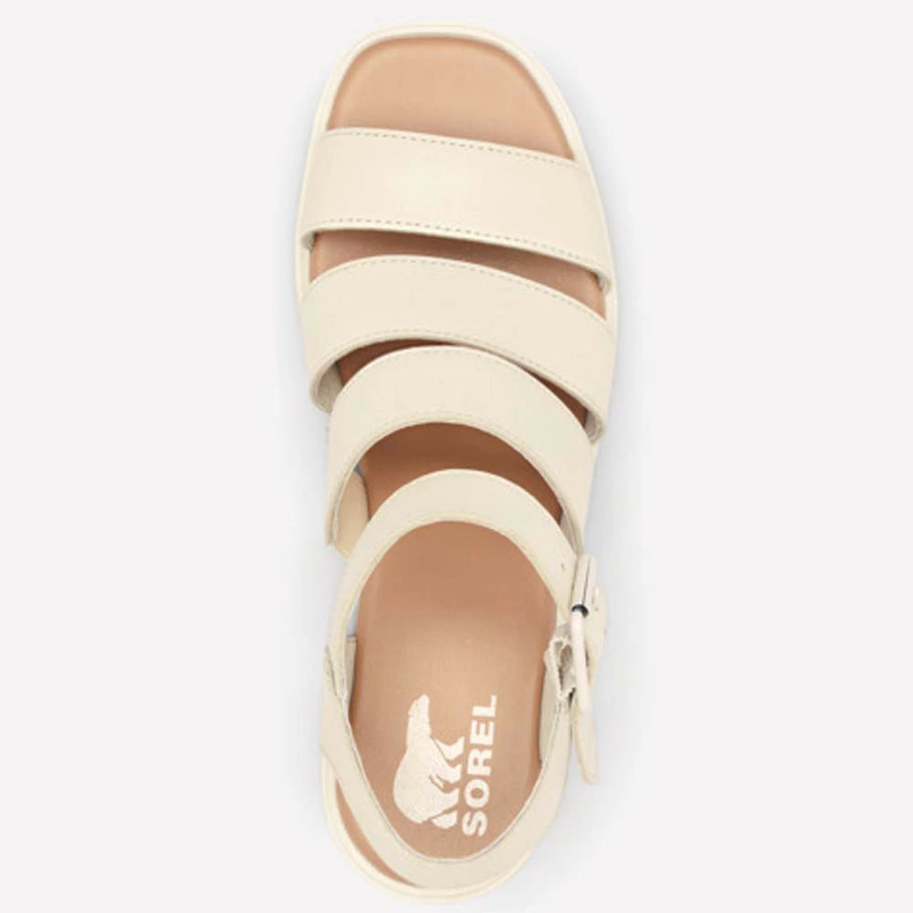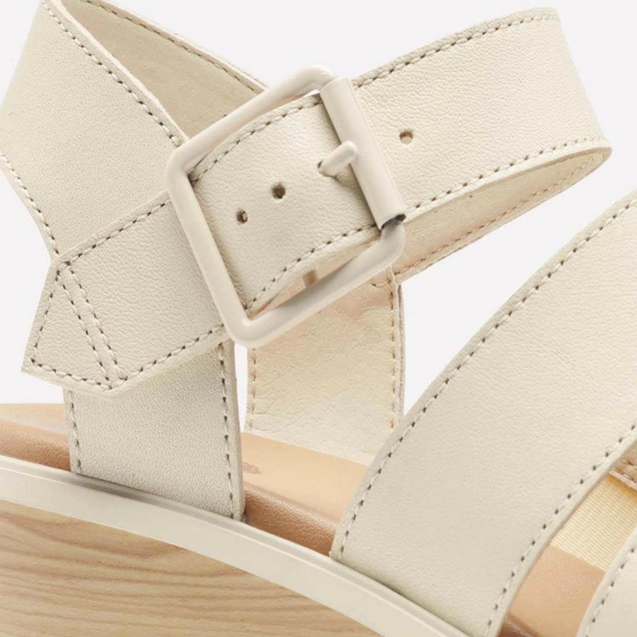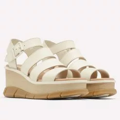 Style this versatile off white sandal easily with multiple outfits. This sandal features a wedged heel, ankle strap with buckle closure, and a heavy duty rubber bottom. You could dress up a fancy outfit for dinner with this sandal or dress down a casual outfit for brunch.