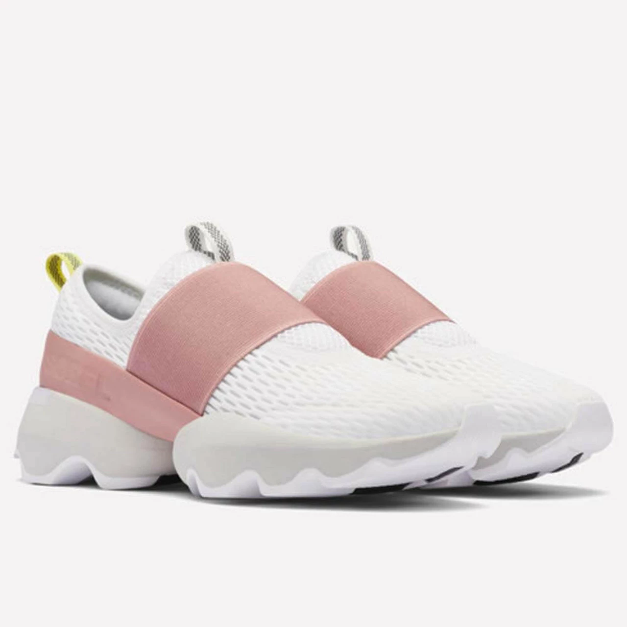 Slip on this sneaker and head off to your daily jog. The elastic band on this sneaker substitutes for shoe laces, but also allows you to have flexibility when wearing the shoe. This shoe is ready to bend and move with you throughout your busy day!Â