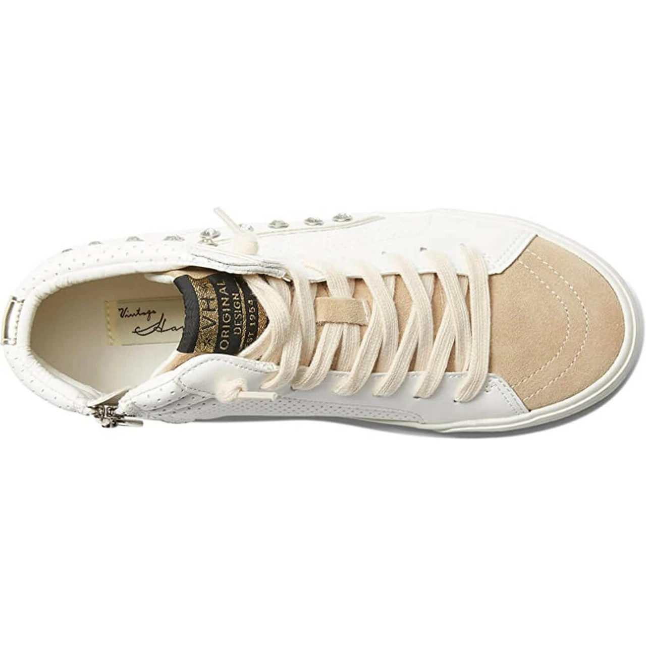 With every step, fuses style and comfort with the Vintage Havana Excel High sneakers. Perforated high top sneaker with faux laces and inside zipper. Rhinestone studded with suede look toe and tongue and high wall sole.