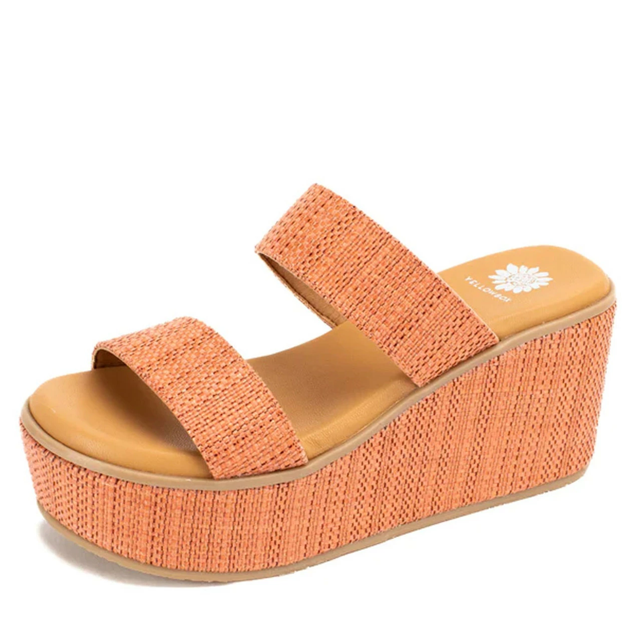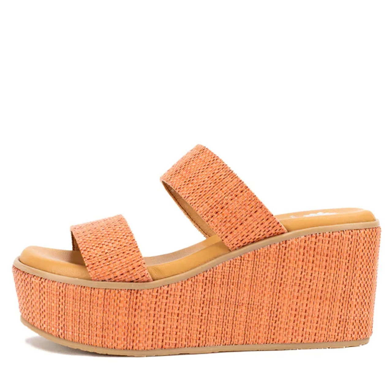 This double strap wedge features a basket weave material that brings upscale style to your footwear.