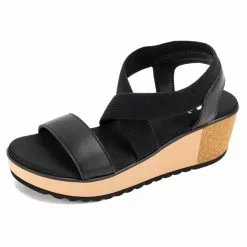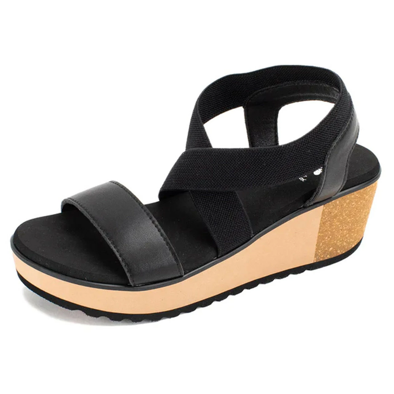 These color blocked wedge sandals feature elastic cross straps and would pair perfectly with your favorite sundress or skirt!